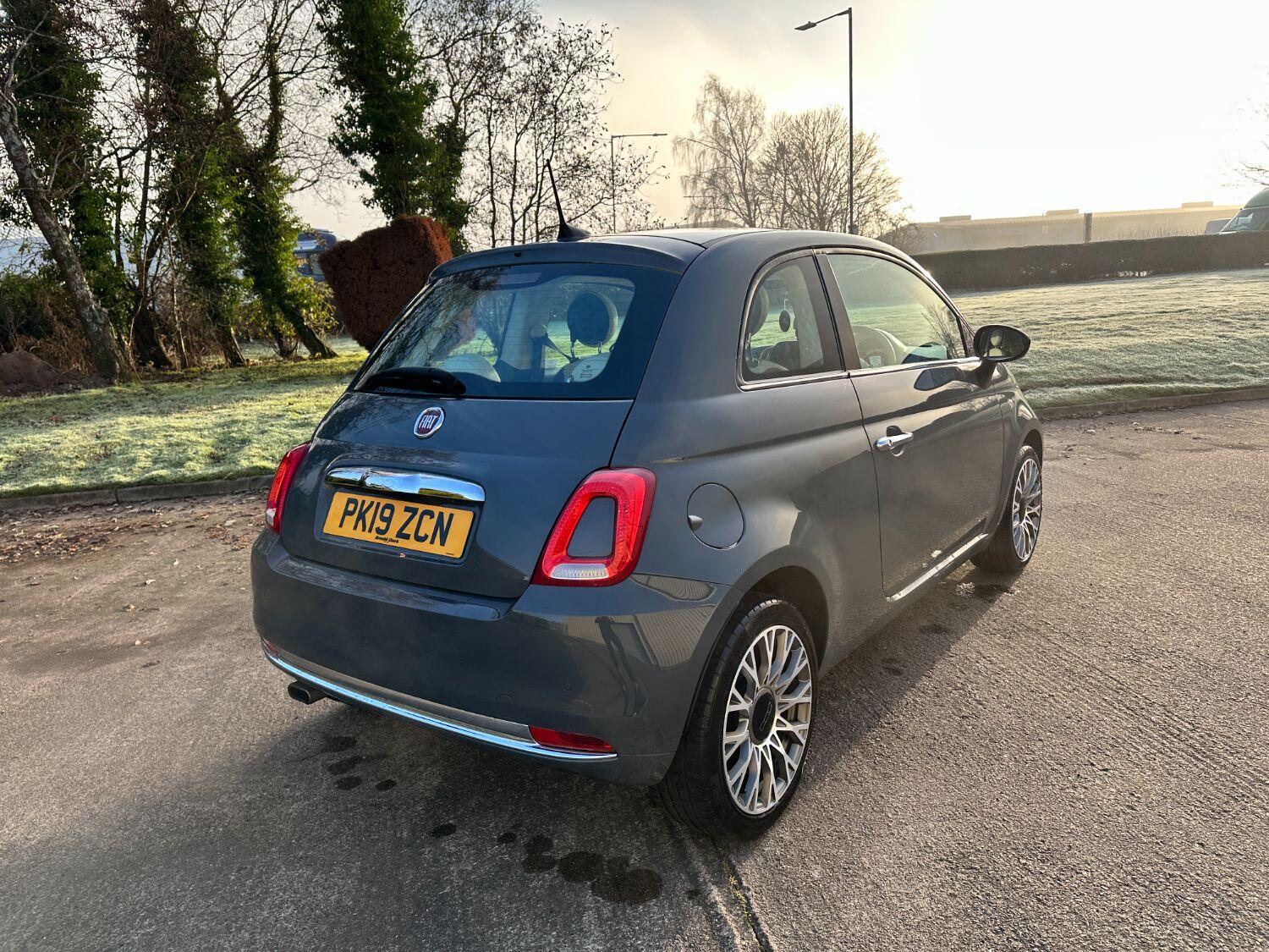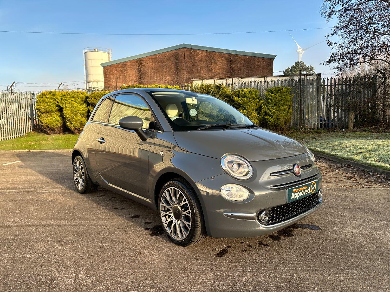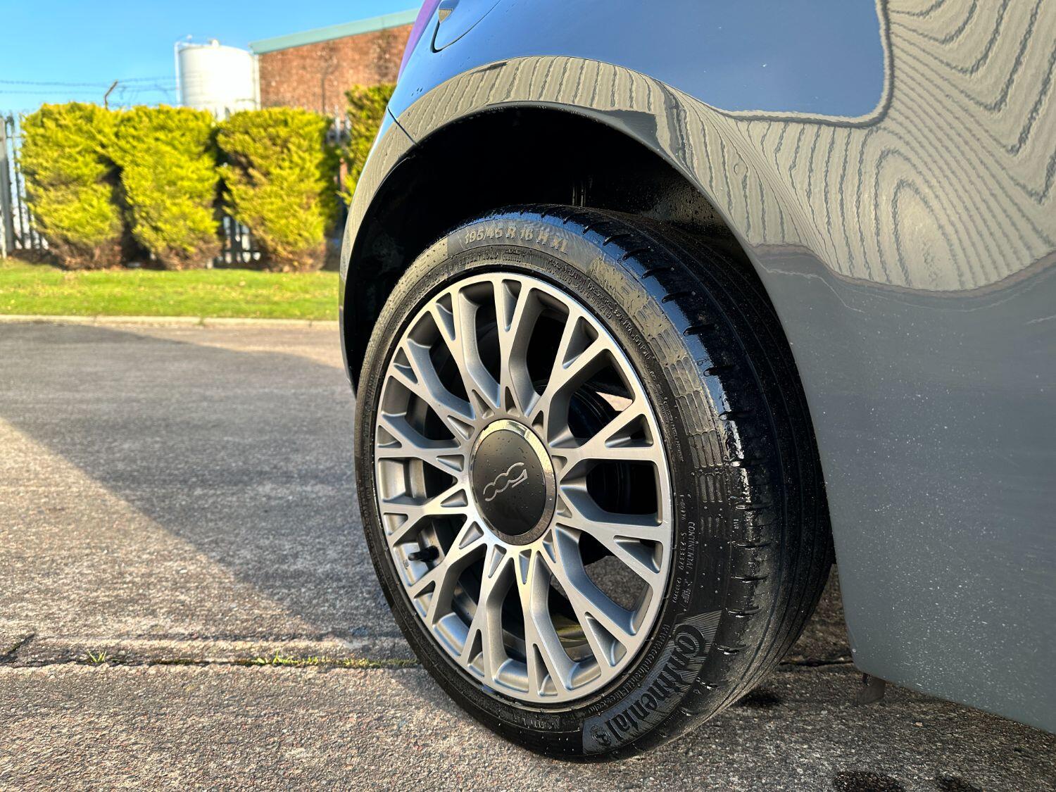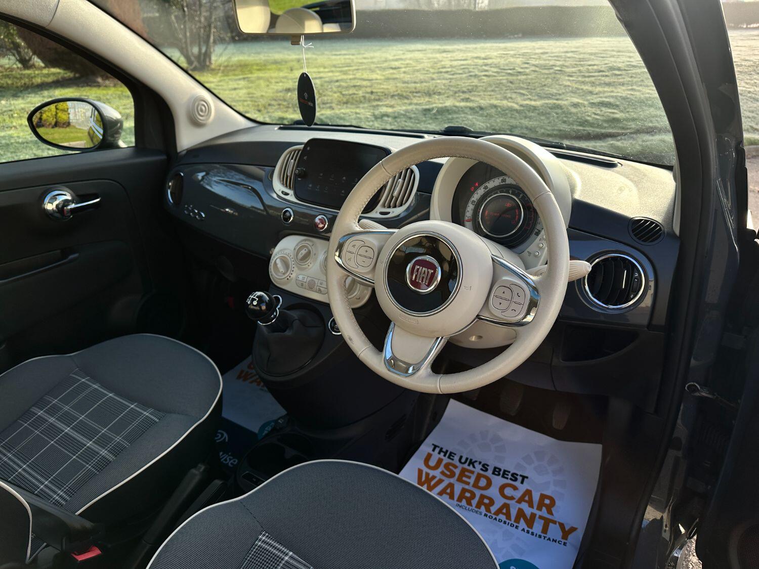 The Fiat 500 Lounge is known for its unique features, and this model is no exception. Finished in a sophisticated grey exterior paired with a light interior, it offers a chic and modern aesthetic. One of the standout features is the glass roof, allowing natural light to flood the cabin and providing an airy feel.